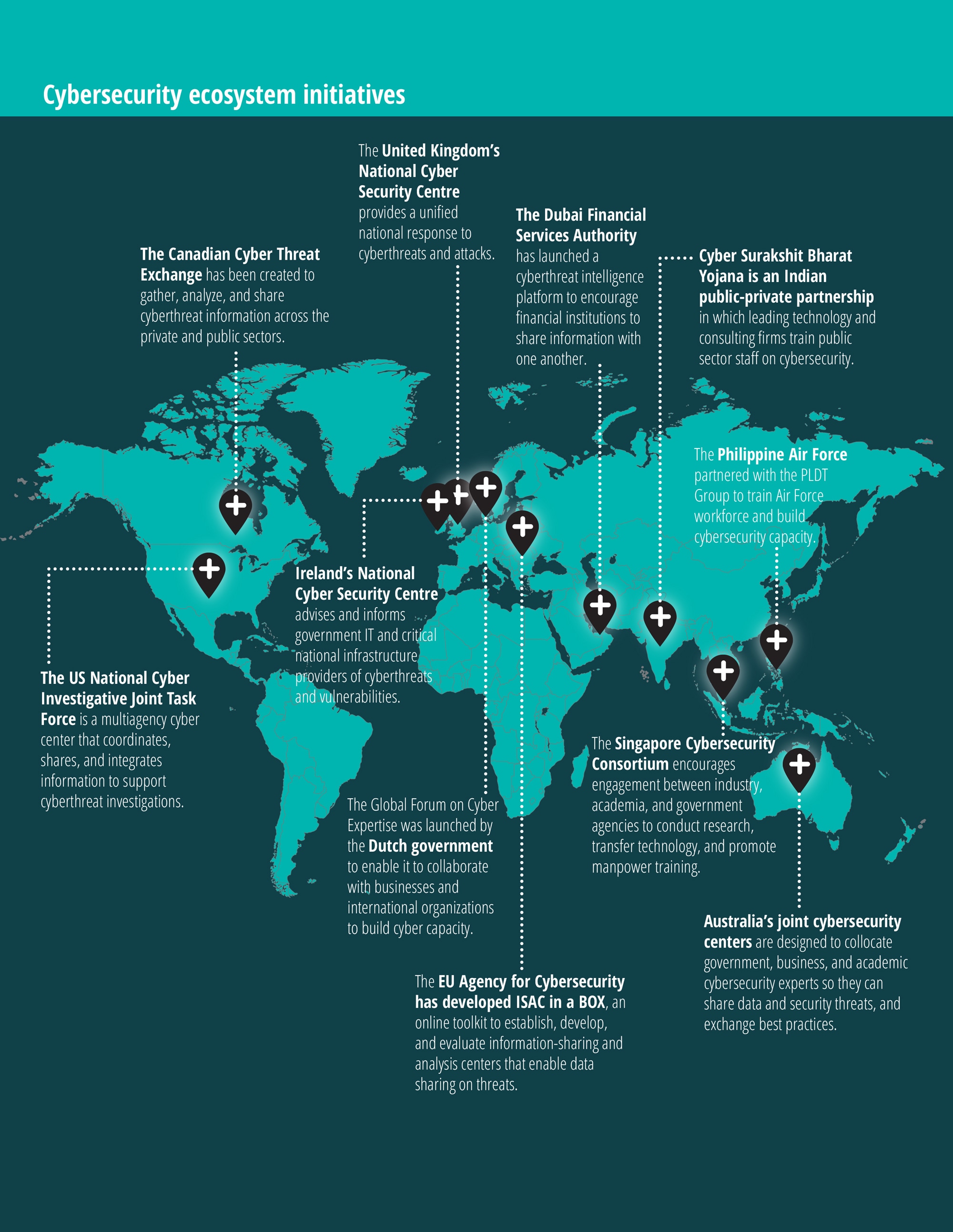 The government cannot function in isolation. As such, there is a growing realization within governments that in order to mount a proper national cyber defense, their role should expand from just securing public networks to helping to secure both public and private networks. Many governments across the world are already moving in this direction. Launched in 2016, the United Kingdom’s National Cyber Security Centre was created to provide a unified national response to cyberthreats and attacks.4 The center provides cybersecurity support to the public sector, the private sector, including small and medium enterprises, and the general public.5 The center supported 723 incidents in the last year and also launched a suspicious-email reporting service for the general public, which flagged 2.3 million suspicious emails and removed 22,000 malicious websites in just four months.6
