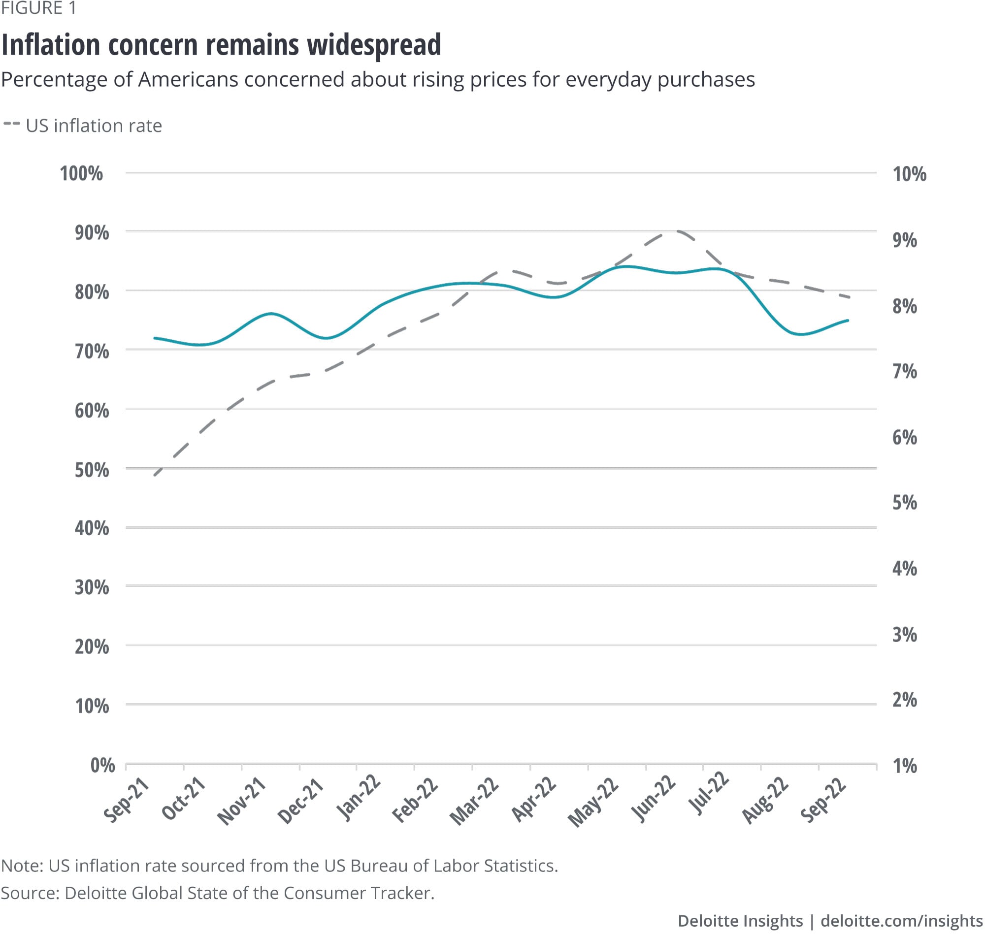 But, more importantly, inflation concern has increased significantly among higher earners over the past year. The percentage of higher-income Americans very concerned2 about inflation has grown from just 29% to 40% since September 2021.3