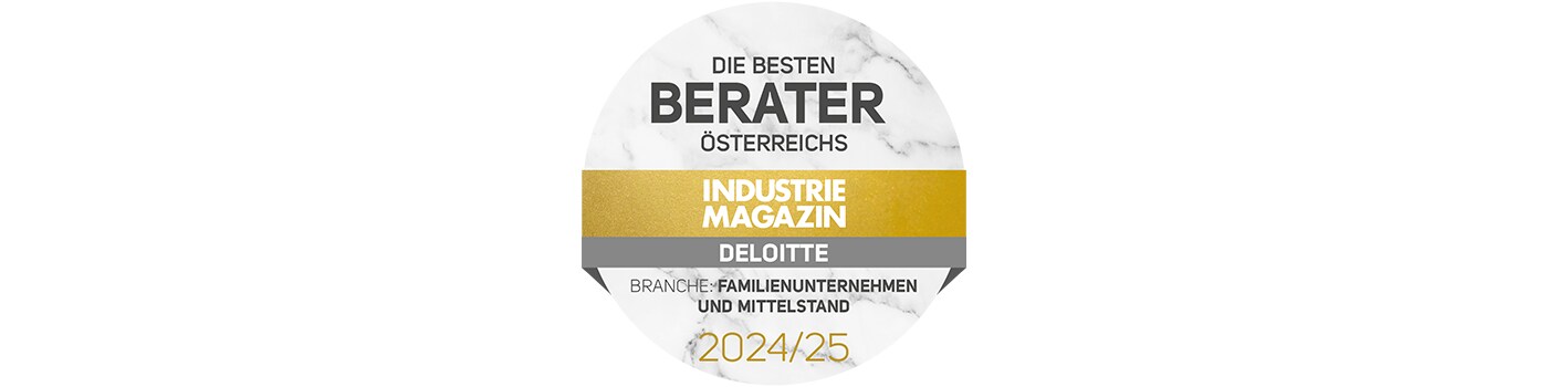Das Industriemagazin erstellt jährlich mittels Befragung leitender Angestellter ein Ranking von klassischen Beratungsunternehmen, IT-Beratern, Beratungstöchtern von Wirtschaftsprüfungsgesellschaften und Inhouse-Consultingfirmen. Es ehrt uns, in dieser Bestenliste in der Sparte “Familienunternehmen und Mittelstand“ 2024/25 den 1. Platz unter Österreichs Top-Unternehmensberatungen zu belegen.