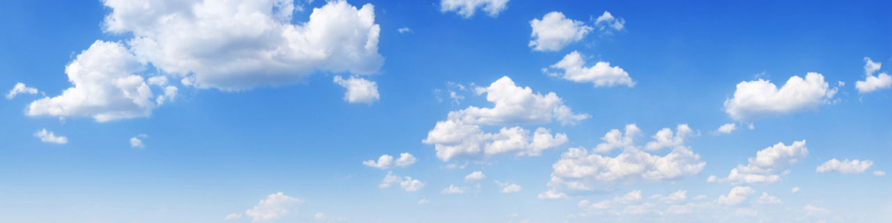 Blue sky with scattered white clouds.