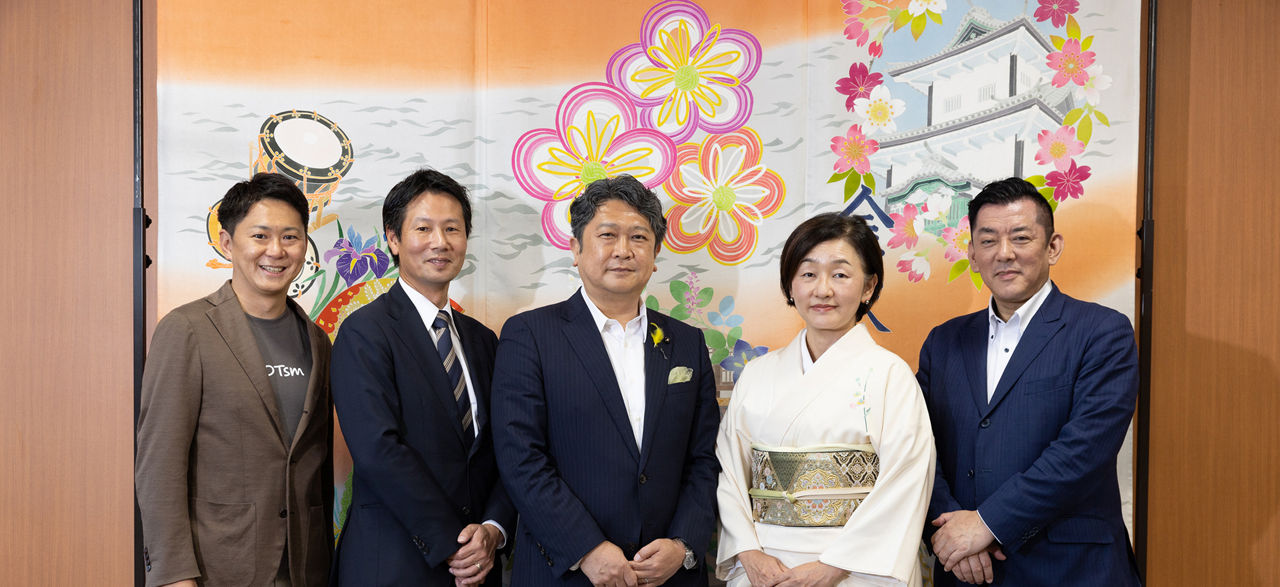 デロイト トーマツ グループ 税務・法務領域ビジネスリーダー 溝口史子、有限責任監査法人トーマツ アシュアランス事業本部長 山本大、そして金沢発の二社――デロイト トーマツ smooth(以下DTsm)代表取締役社長 中野祐希、デロイト トーマツ アリーナ(以下DTA)代表取締役社長 花尾正人が、村山卓・金沢市長を訪れた。