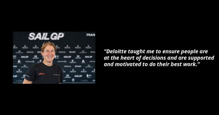I’m proud of having worked for Deloitte and the experiences from my time there naturally keep me connected. I use ex-colleagues as a sounding board, and offer the same in return and actively seek out opportunities for paths to cross. Both personally and professionally at SailGP, Deloitte contacts have been a great source of advice and counsel as I transitioned into my role here and as we look ahead to ambitious growth plans for the League. More broadly, I stay connected through the alumni newsletter, the Green Room podcast and Ian Stewart’s Economic Updates. I was a panellist at the Network’s May alumni event on how to super-charge the growth in women’s sport, and this was a great opportunity to connect and reconnect with industry experts … and footballer Vivianne Meidema!
