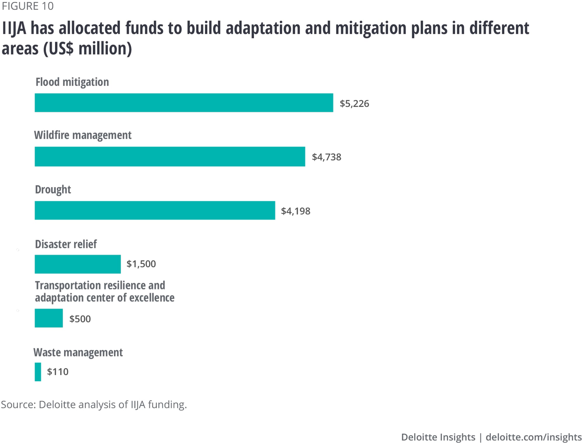 All transportation agencies should consider climate-driven complexities during the project design and selection phase. With billions in IIJA funding to build climate-resilient infrastructure (figure 10), transportation agencies can move toward a more data-driven approach to investment.65