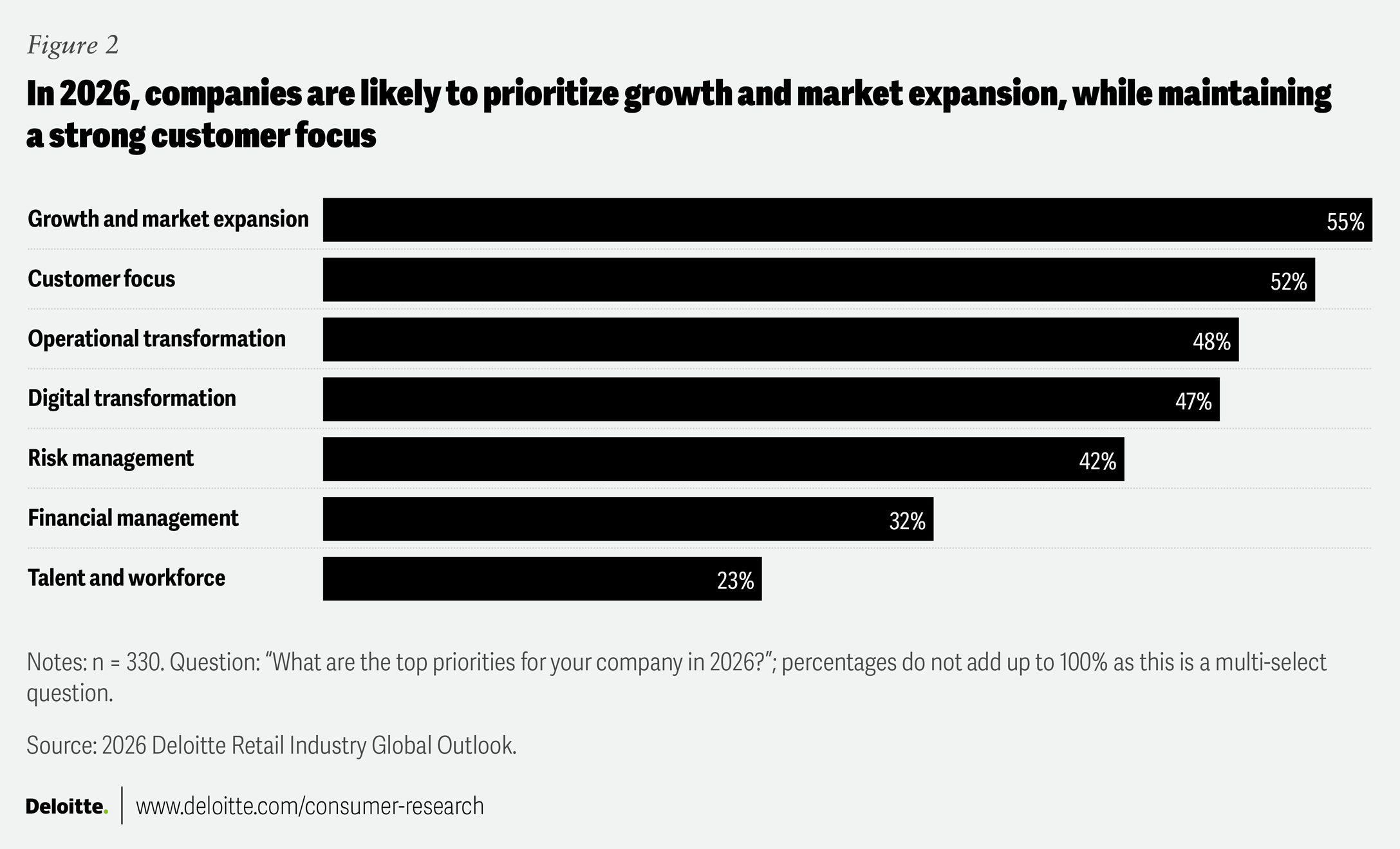 At the same time, retailers surveyed are prioritizing growth, the customer, and investment in operational and digital transformation (figure 2).