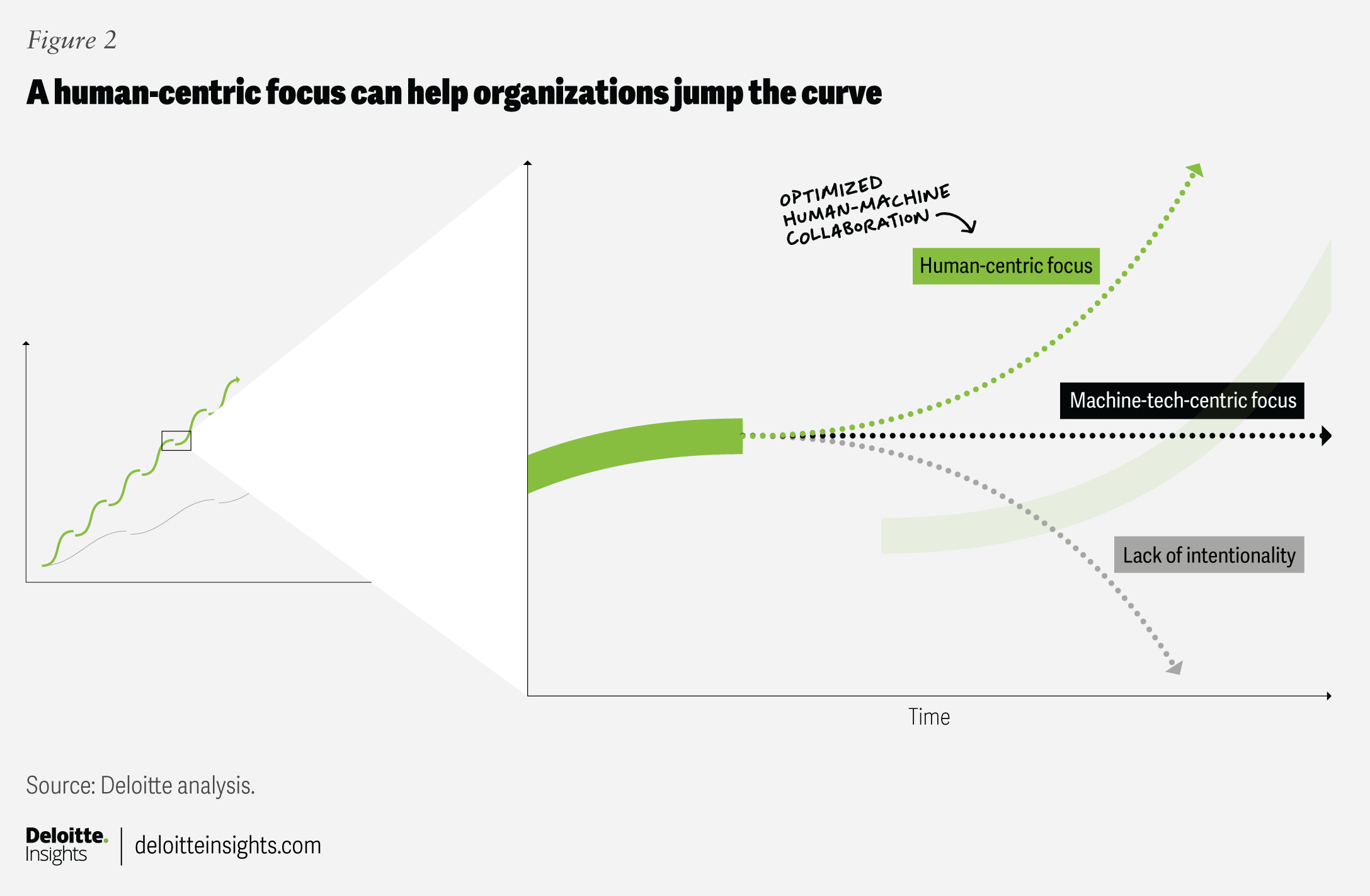 This human-centric focus allows organizations to confidently jump the curve rather than stay on the same curve, or worse, fall off the curve entirely (figure 2).